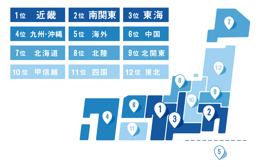 ②在住エリア:国内では、近畿、南関東、東海が中心。欧米、アジア各国など、国外在住の学生も!